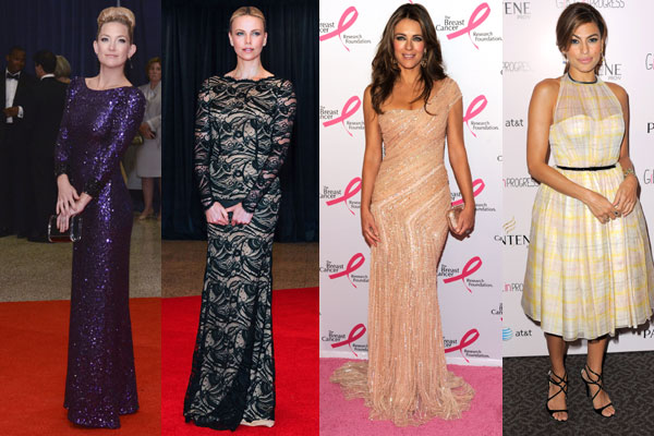 This is how you do 46! The British beauty rocked an extremely flattering gown at The Hot Pink Party in New York. She looked radiant in this embellished blush Jack Guisso Couture gown paired with a glimmering clutch and Tresor rose quartz earrings. Way to go Liz!
